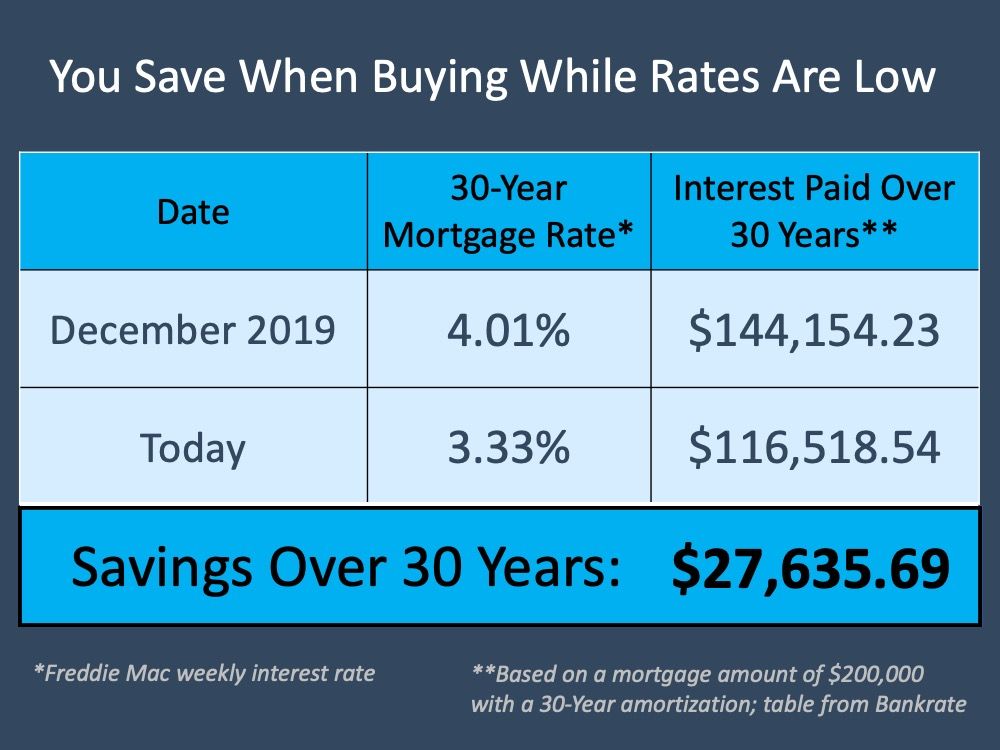 All of this can happen within the required safety protocols, so real estate professionals are continuing to help families make important moves. 3. Buyers understand that mortgage rates are a key component when determining their monthly mortgage payments. Mortgage interest rates are very close to all-time lows and afford today’s purchaser the opportunity to save tens of thousands of dollars over the lifetime of the loan. Looking closely at the third reason, we can see that there’s a big difference between purchasing a house last December and purchasing one now (see chart below):