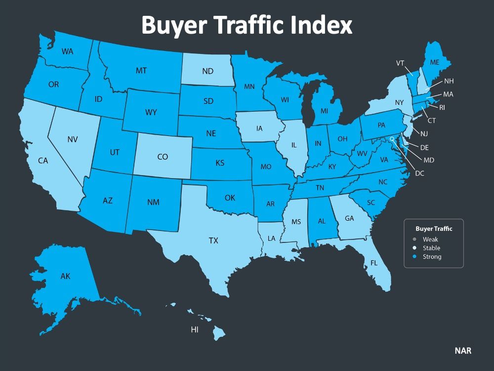 The map below was created after asking the question: “How would you rate buyer traffic in your area?”